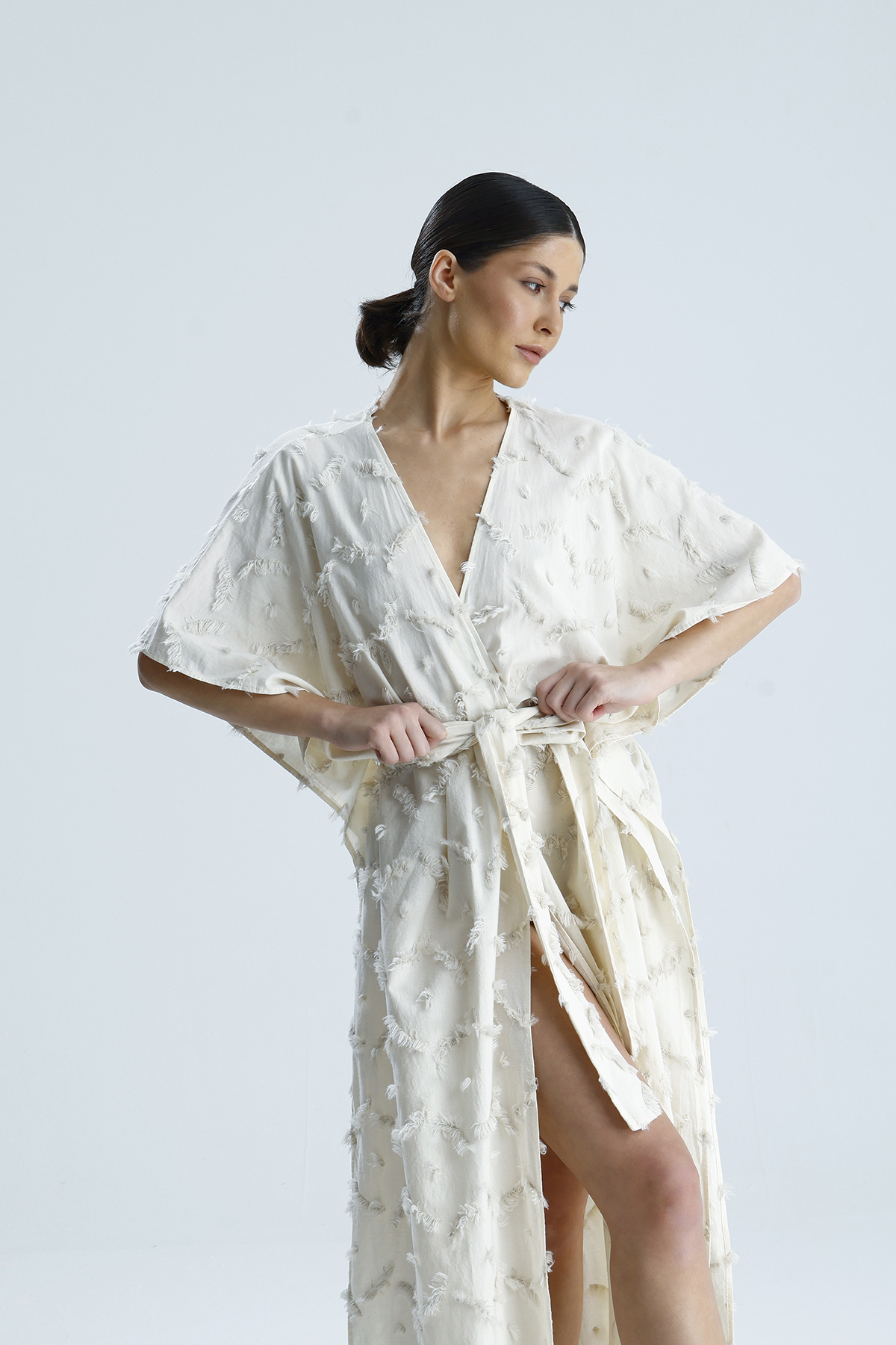 Beyaz Sorronto Uzun Kimono
